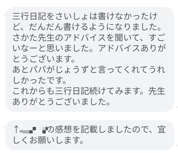 そして、お子さんが書いた3行日記を